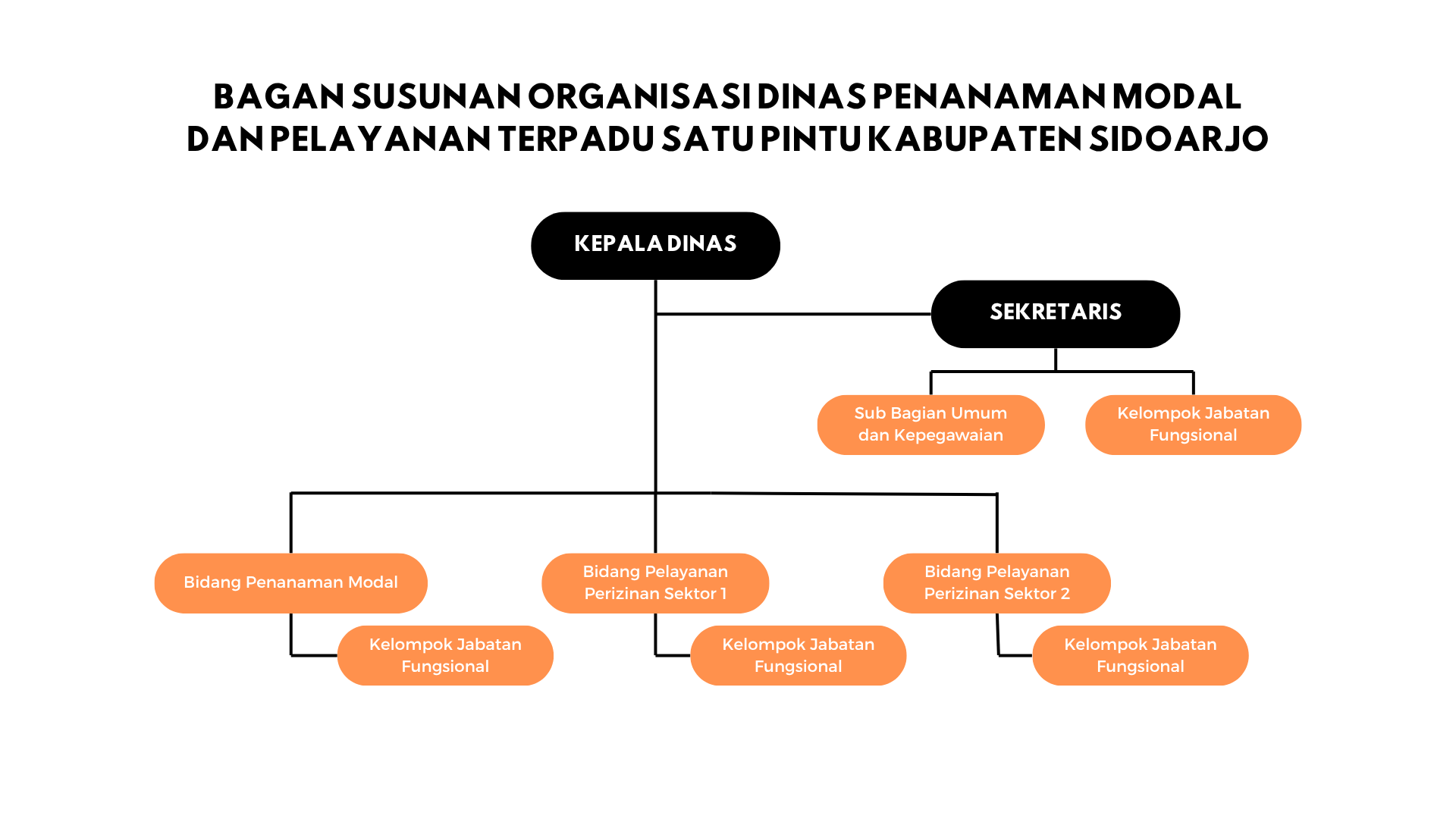 Berdasarkan Perbub Nomor 15 Tahun 2022 tentang Kedudukan, Susunan Organisai, Tugas dan Fungsi, serta Tata Kerja Dinas Penanaman Modal dan PTSP Kabupaten Sidoarjo, pasal 4 dan 5, rincian tugas dan fungsi Dinas Penanaman Modal dan PTSP adalah sebagai berikut: